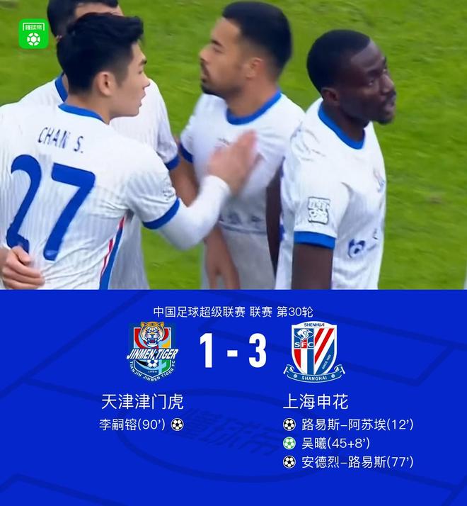 北京时间11月22日15时30分,中超联赛第30轮比赛同时开始。上海申花做客天津奥体中心体育场挑战天津金门虎。主裁是高崎相树(日本),VAR裁判是王伟。上半场,阿苏埃利用胡安·罗斯的低射失误取得领先。吴曦凭借点球获得加分。下半场,安德烈·路易斯一人进球,李斯龙替补上场,打进个人首球。最终,申花3-1击败金门虎,连续第二年获得联赛第二名。重头戏第12分钟,胡安·罗斯防守区内失误,阿苏埃破门,首回合申花1-0领先天津猛虎。第45分钟和第8分钟,王献军手球破门,吴曦打门得分,首回合申花2-0领先金门虎。第77分钟尤特,安德烈·鲁伊斯进球,新卡3-0!第90分钟,李斯龙头球攻入个人首球。天津猛虎队以1胜3负负于申花队。两队球员入场,场面激动人心。战斗即将开始。第25分钟,蒋圣龙门前摇头,皮球溢出。第28分钟,申花前场断球,阿苏埃远射被没收。第30分钟,阿苏埃前场断球,杀入禁区,将球轰入球门。球被没收了。第35分钟,凯尔斯带球突破。敖宝直传将球没收。第38分钟,杨秉良送大礼。若昂·特谢拉赢得球并射门高出。第41分钟,申花连续进攻得手,但均被挡出。第45、2分钟,1-3高天翼射门偏出,球被挡出。在t第57分钟,若奥·特谢拉插上尝试射门,但皮球被挡住。第86分钟,李斯龙替补登场,攻入天津门湖首球。观看中超联赛并支持本地球队!球队阵容技术统计
